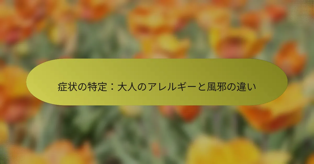 アレルギーと風邪の症状を区別するには、それぞれの状態の特定の特徴を考慮してください。アレルギーは通常、環境要因によって引き起こされる症状を示し、風邪はウイルス感染によって引き起こされ、発症と持続の明確なパターンがあります。